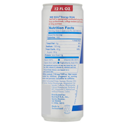 . Get full nutrition facts for other Red Bull products and all your other favorite brands. Red Bull Energy Drink 80 mg per 84 FL OZ. Keto Health Insights for Red Bull The Coconut Edition.